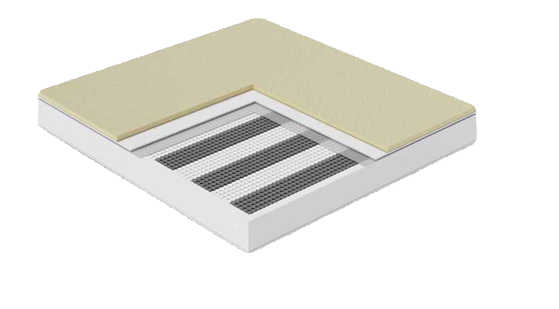La superficie del materasso è arricchita da 5 cm di memory foam, un materiale viscoelastico che si adatta perfettamente alla forma del corpo. Questo strato dona una sensazione di avvolgimento, riducendo la pressione su spalle, schiena e fianchi, per un comfort superiore.